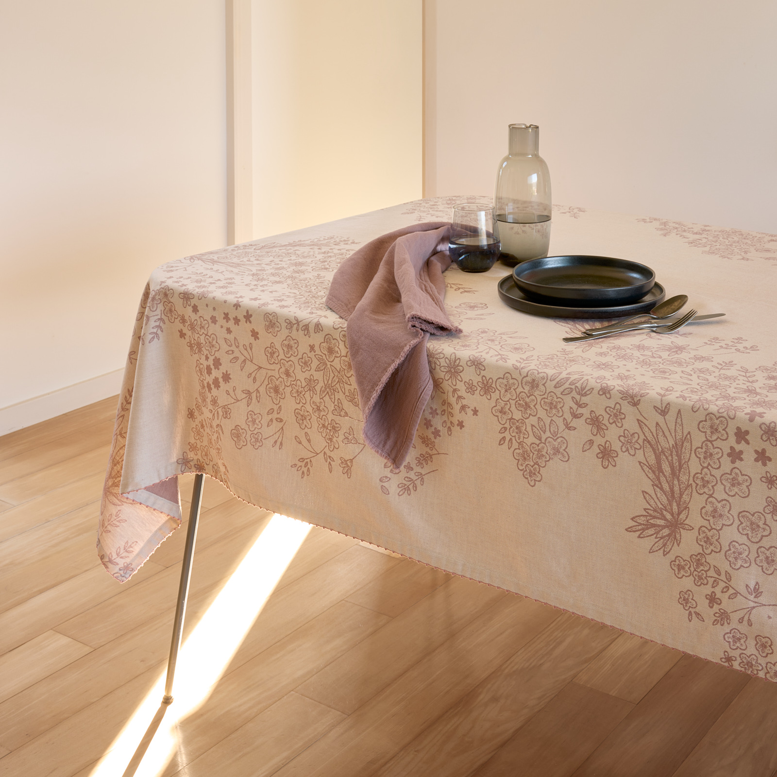 A Toalha Mesa Ecossistema celebra a beleza e serenidade que a natureza traz para os espaços. O seu design de autor, autêntico e exclusivo, revela um cenário natural trabalhado, criando um visual orgânico e artístico que transforma os momentos de partilha com encanto. A sua composição especial , em algodão BCI e fibra de urtiga, revela a resistência, durabilidade e o toque rústico desta toalha de mesa. Igualmente idealizada em dupla-face, amplia as possibilidades de utilização, possibilitando a criação de diferentes cenários de mesa de acordo com a ocasião. Os detalhes e cuidado artesanal podem ser vistos também nos cantos ingleses e no acabamneto em picueta, que conferem longevidade e um aspeto sofisticado. Com uma paleta de cores intensas e calorosas como o âmbar, capaz de trazer energia e cor para a mesa, e o rosa terra que trasmite serenidade, paz e delicadeza, toda a sua essência foi pensada para transformar os encontros à mesa, criando um ambiente de tertúlia, harmonia e paz com a sua presença, à mesa. Um elemento que serve como decoração como ajuda a proteger a mesa de danos e sujidade.