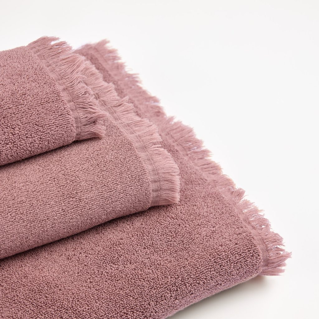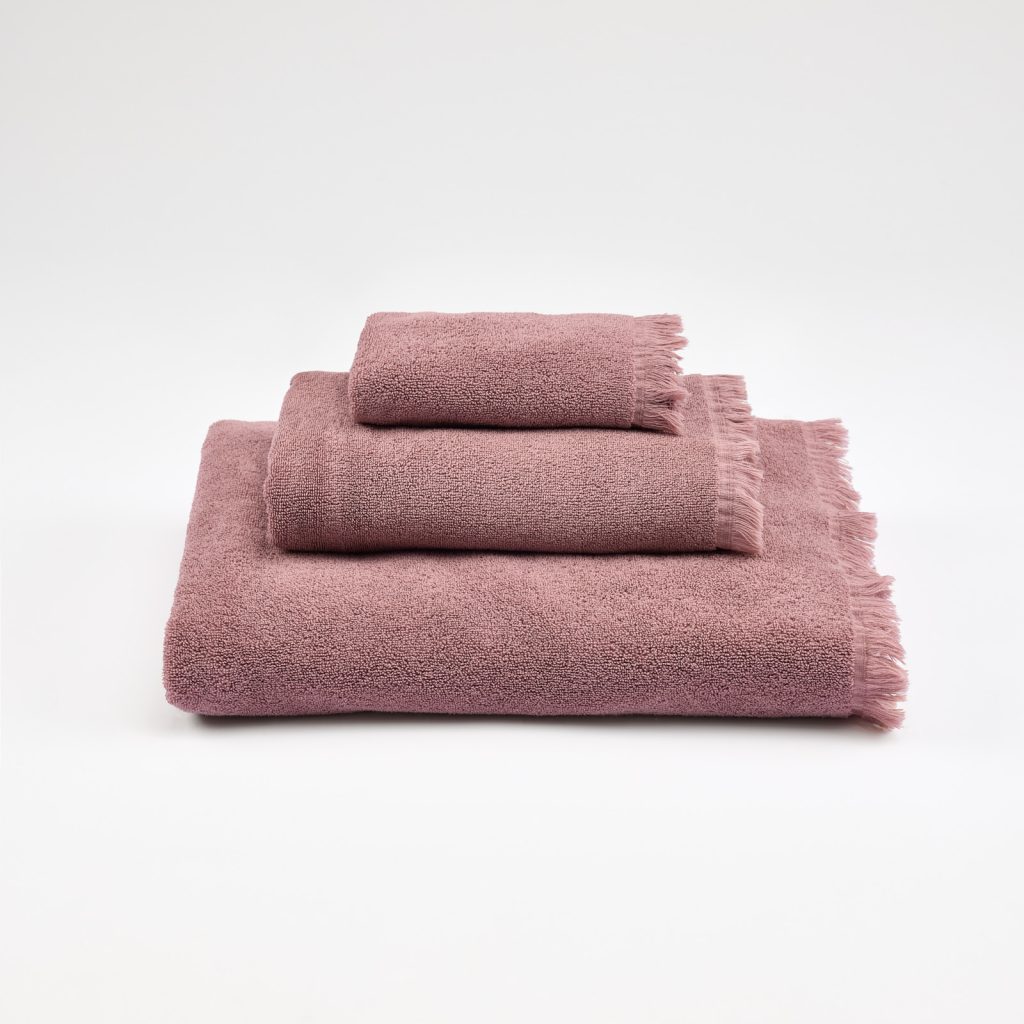 Bath towel set Set of 3 bath towels Available sizes: 1x (30 x 50 cm) + 1x (50 x 100 cm) + 1x (100 x 150 cm) Available colors: Amber, Somky Grey and Earth Rose Its composition contains 100% BCI cotton 500 GSM. All our items are produced entirely in Portugal and undergo a washing process. This process guarantees their cleanliness and gives them an incredibly soft touch. Additionally, this washing prevents the garments from shrinking and fading after the first wash, thus ensuring their immediate use and maintaining their quality over time.