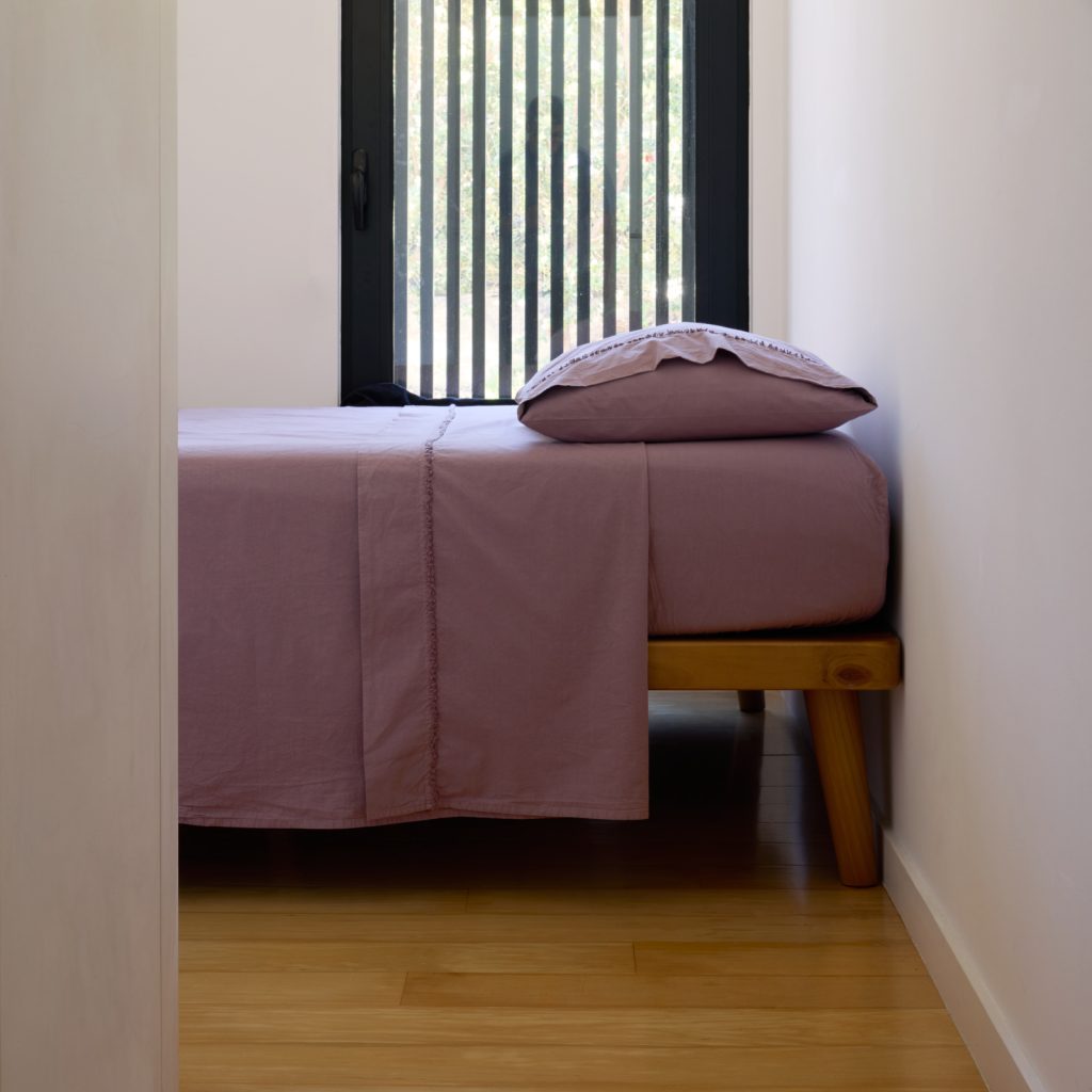 Soft and delicate to the touch, the Eternal Bed Sheet Set reveals unmatched superior quality, crafted from 200-thread-count 100% BCI cotton percale. It provides freshness with every use, combined with lightness and comfort, ensuring the best nights of sleep throughout the year. Designed for those who seek to transform rest into an authentic and sophisticated well-being experience, its airy feel makes it perfect for peaceful nights, offering an enveloping sensation of deep relaxation. With an elegant and simple design, the Eternal Bed Sheet Set stands out as a timeless piece that can be used in any season and easily combined with more expressive items, serving as a base that balances tones. Its subtly wrinkled appearance is part of its charm, resulting from a garment-dyeing process that enhances natural beauty and eliminates the need for ironing. The extra-soft touch and relaxed look reinforce its modern and authentic concept. Available in a palette of subtle, light tones, such as earth rose and light beige, it adapts effortlessly to the ambiance you desire. Earth rose evokes delicacy and warmth, creating a cozy and contemporary feel, while light beige conveys serenity and neutrality, allowing easy coordination with other colors and textures in your bedding. In addition, its garment-dyeing process gives each piece a unique and exclusive color and greater durability, as well as superior quality and an extra-soft touch.