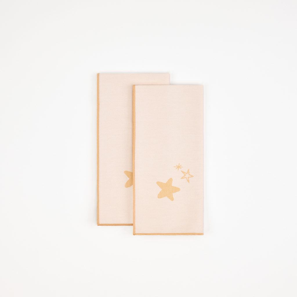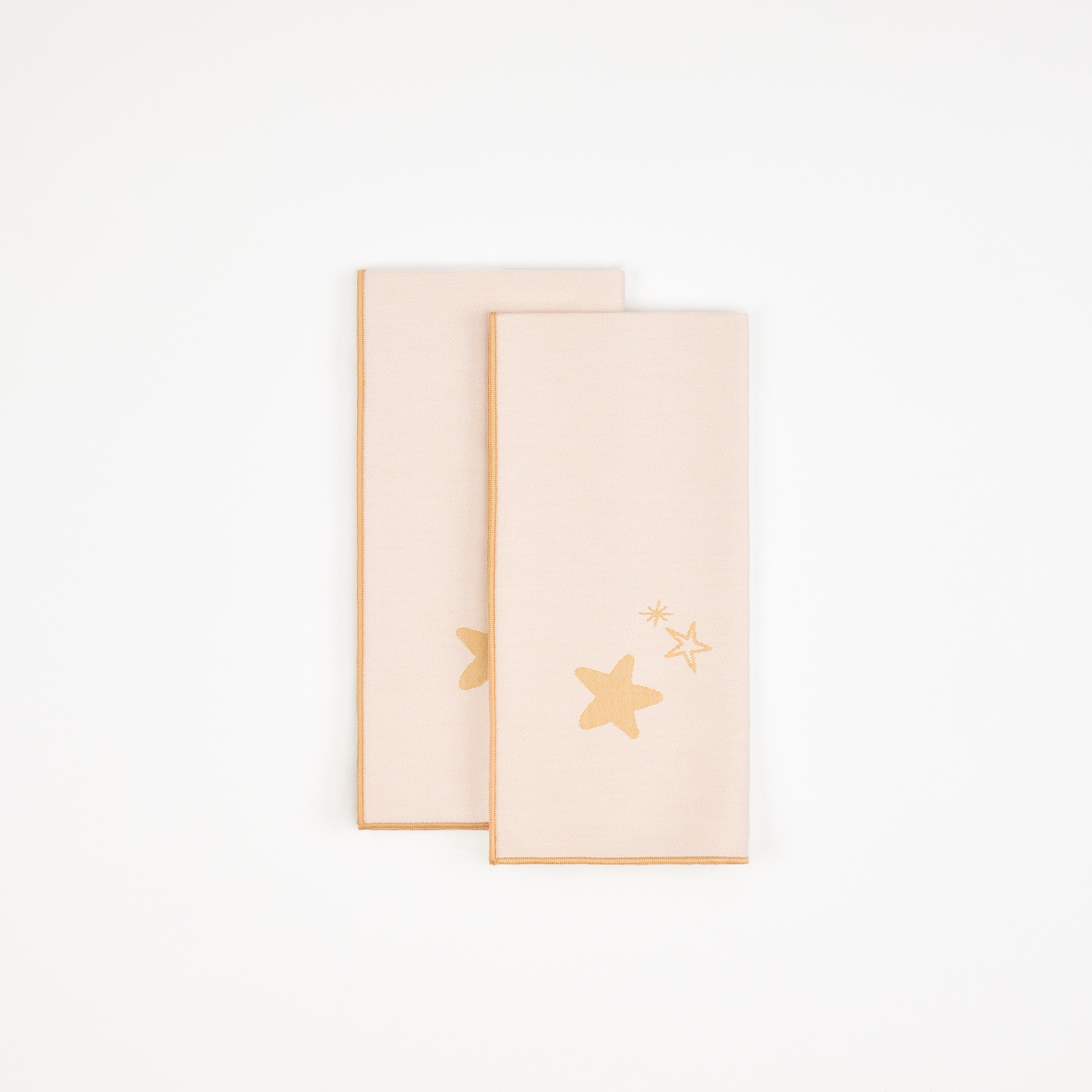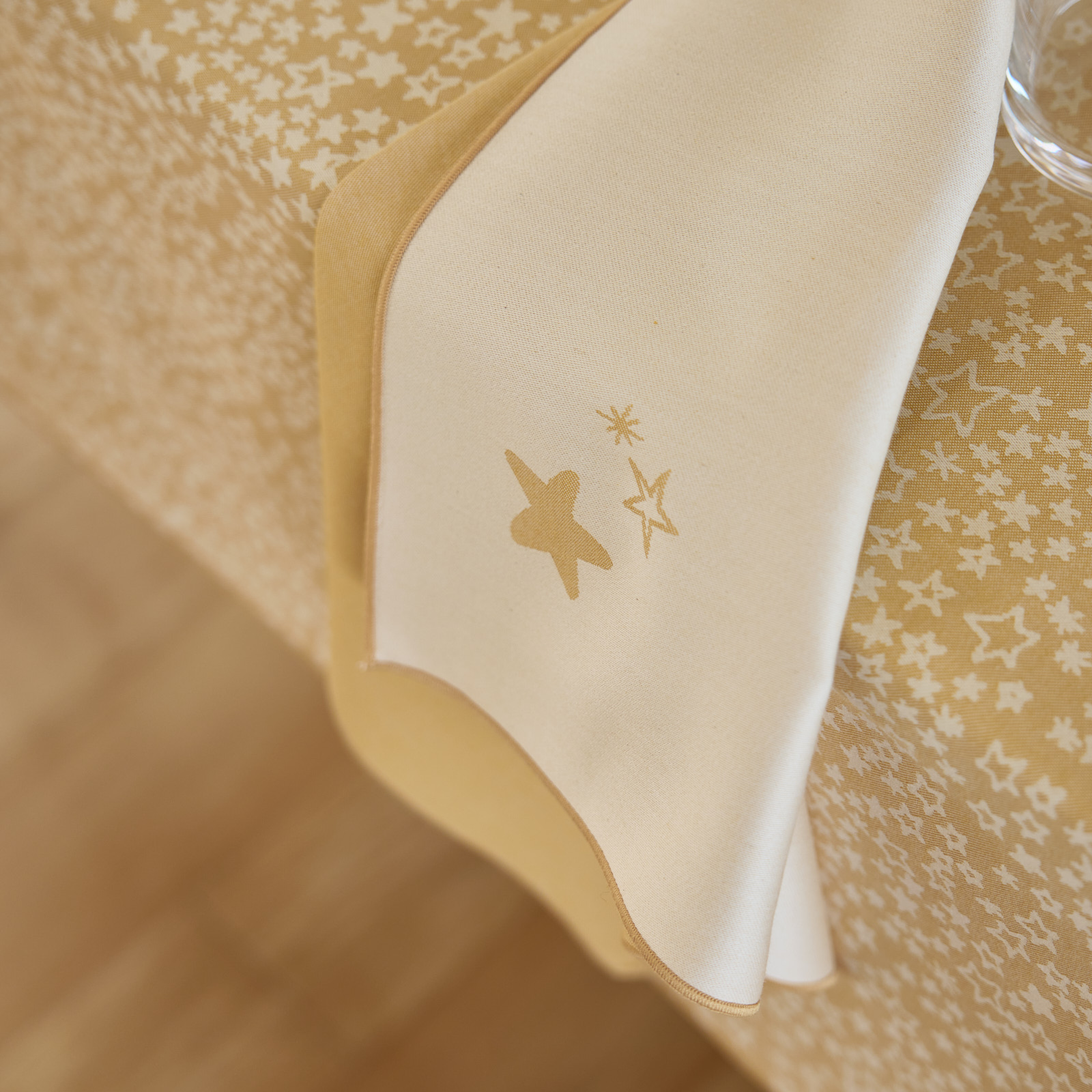 The Constellation Square Table Napkins embody the beauty found in detail and the charm of simple gestures. Inspired by the sparkle and energy of the holiday season, these table napkins were designed to complement the tablecloth from the same line, extending the harmony of the set and enhancing the table’s warm and luminous atmosphere. Developed in the same tones, they feature a delicate hand-drawn star motif, a symbol of light, unity, and sharing, three values that Season associates with the essence of Christmas. Their signature design adds dynamism and an elegant touch to every meal. Crafted in a double-faced construction with a refined rolled hem around the edges, just like the tablecloth, these napkins offer versatility and sophistication, allowing for different combinations and folding styles. A set of two table napkins that completes the visual story of the table, whether for a family Christmas dinner or a special occasion, the subtle glow of their stars brings a note of poetry and emotion to every moment.