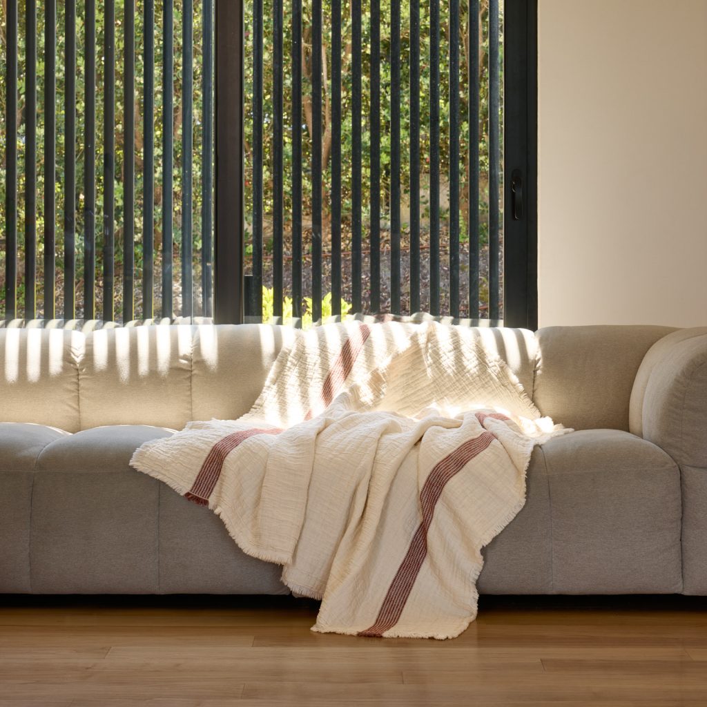 A throw is a decorative textile element used occasionally to cover or warm up for a short period. Throws are a decorative element that is easy to change and combine.