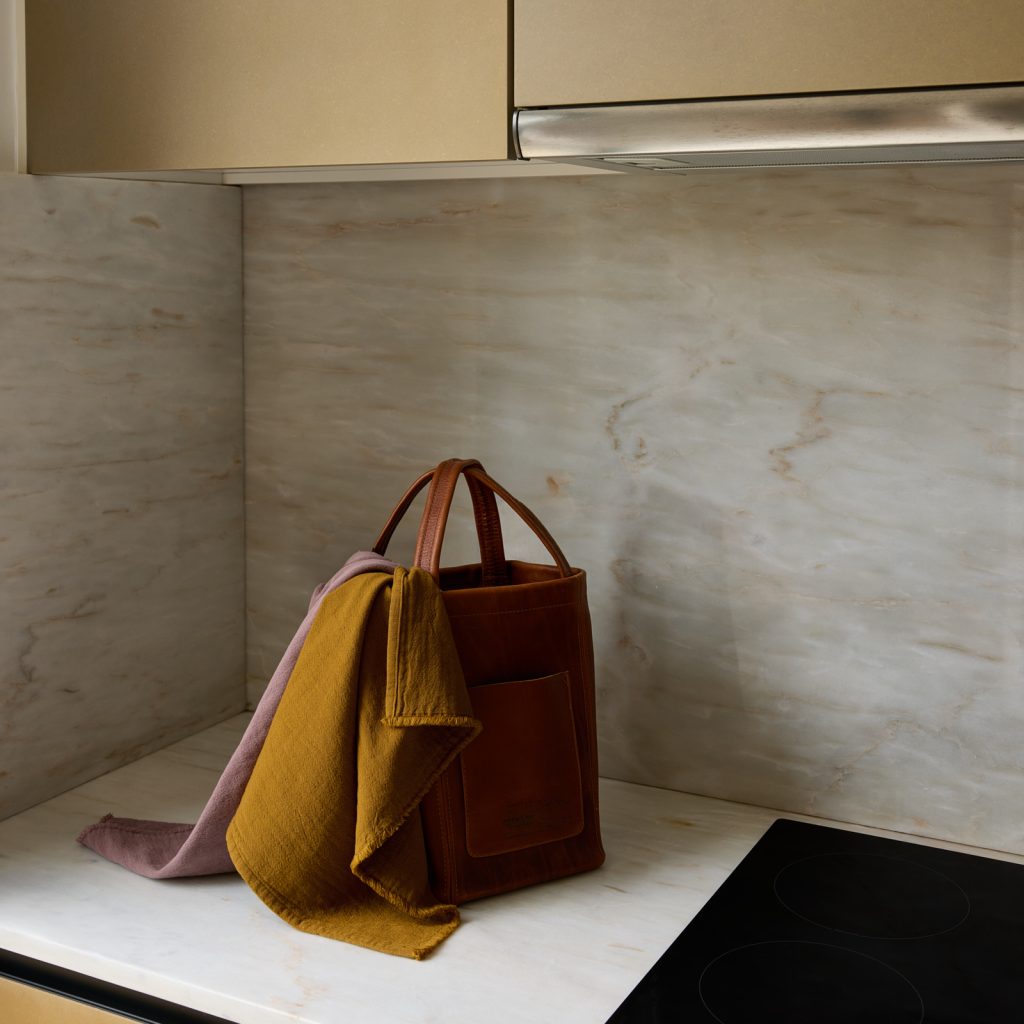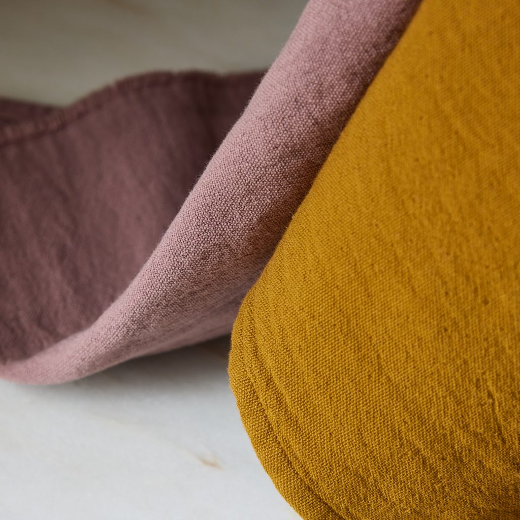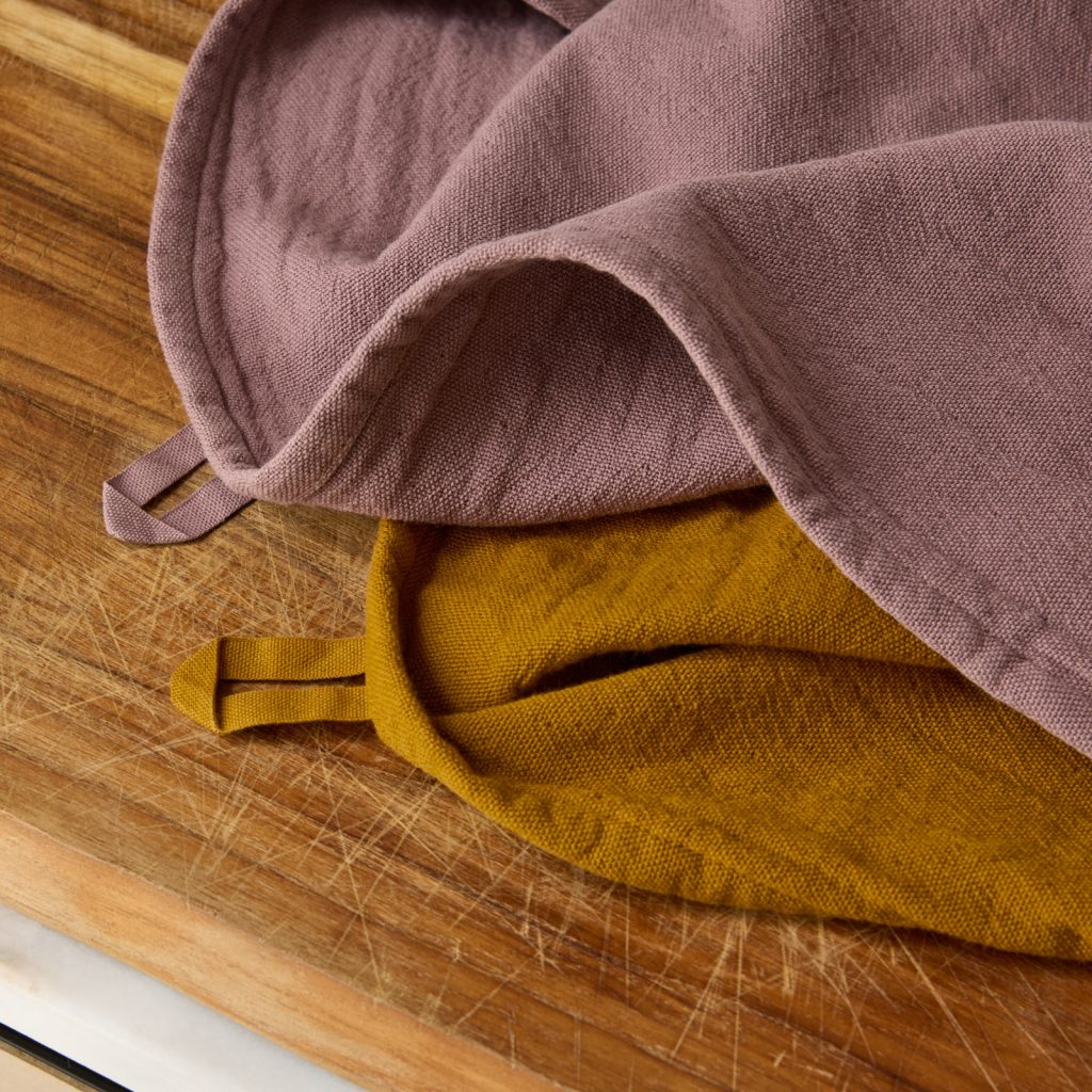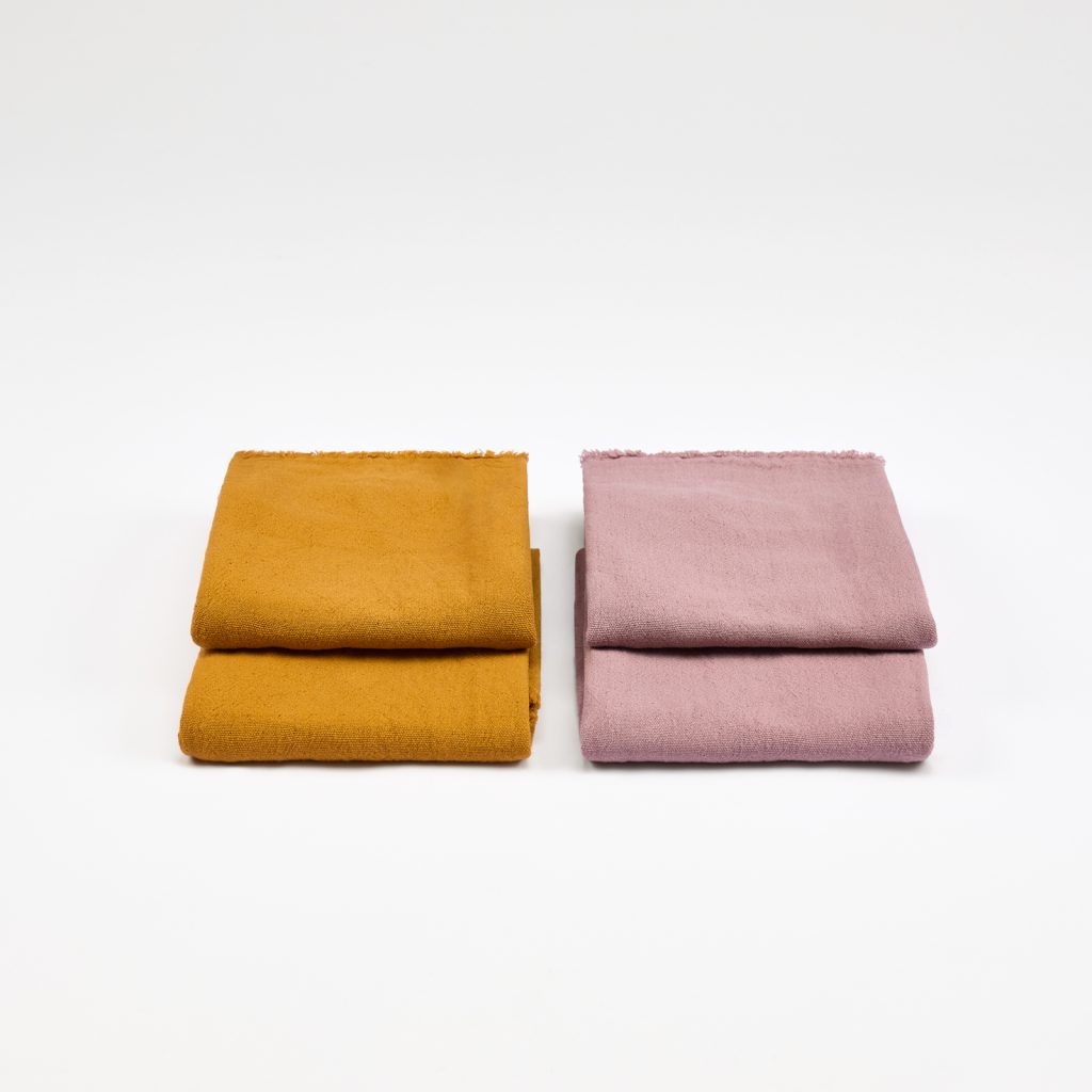The Mythos Kitchen Towels combine simplicity, functionality, and a touch of color to make daily routines more enjoyable. This set includes four kitchen towels, two in earth rose and two in amber, offering a balanced combination of delicacy and vitality, capable of brightening the kitchen and adding personality. With a smooth and simple design, the Mythos Kitchen Towels are practical and versatile. Earth rose brings a sense of calm and serenity to the kitchen, while amber conveys energy and vibrancy. Together, these shades harmonize perfectly and adapt to various kitchen styles. A set that blends utility with aesthetics, ideal for drying dishes and utensils, assisting with culinary tasks, or subtly decorating the space. Pair them with the Ecossistema Tablecloth and Biotic Placemats to complete a harmonious table setting. In addition, its garment-dyeing process gives each piece a unique and exclusive color and greater durability, as well as superior quality and an extra-soft touch.