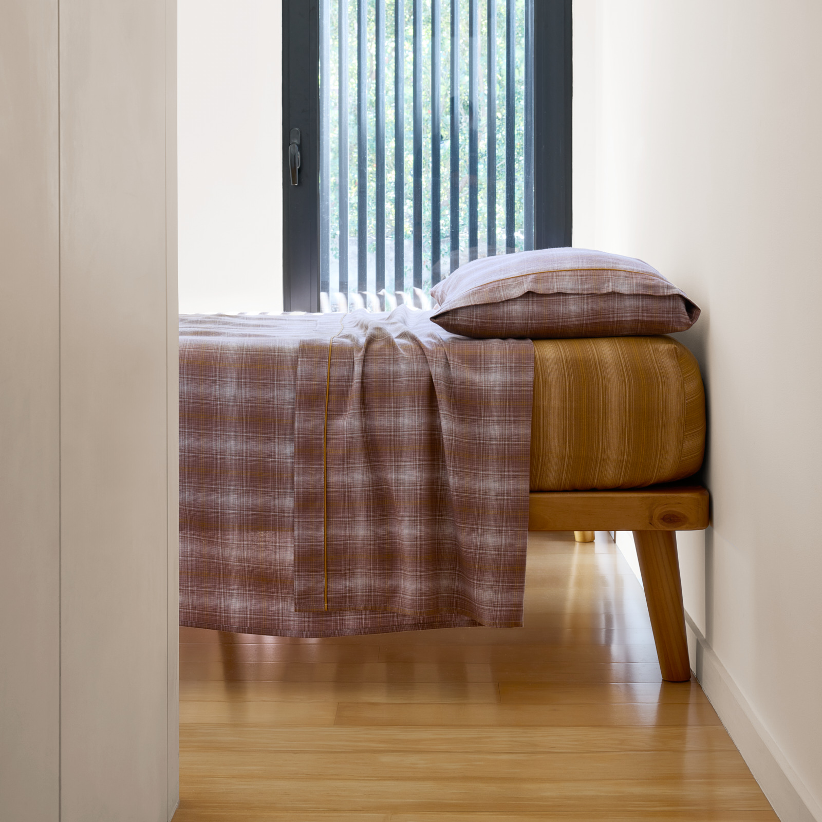 O Lençol Baixo Holos Smooth é a peça ideal para uma cama confortável e equilibrada, concebido na mesma estética do Lençol Cima e Fronha Almofada Holos Smooth. Com o mesmo padrão de riscas delicadas, que alternam entre tons mais intensos e mais claros, e disponível nas duas versões de cor, âmbar e bege claro, este lençol oferece continuidade visual e reforça a sensação de harmonia no ambiente. Em flanela 100% algodão BCI, promete aquecer e oferecer suavidade a cada toque, envolvendo o corpo em conforto durante todo o descanso. Este lençol acrescenta sofisticação e bem-estar à cama, traduzindo-se num verdadeiro convite ao relaxamento. A versatilidade é outro dos seus grandes atributos. O Lençol Baixo Holos Smooth foi pensado para integrar-se facilmente com os diferentes artigos da coleção, permitindo conjugar riscas, cores e padrões de forma criativa e personalizada. Essa liberdade de combinação permite total flexibilidade, podendo escolher e combinar o lençol, com outro lençol e fronha, de acordo com o seu gosto e estilo de decoração, criando desde ambientes minimalistas até composições mais ousadas e cheias de cor. Simples, elegante e funcional, o Lençol Baixo Holos Smooth, promete acolhê-lo todas as noites mais frias com um toque caloroso e de estilo.