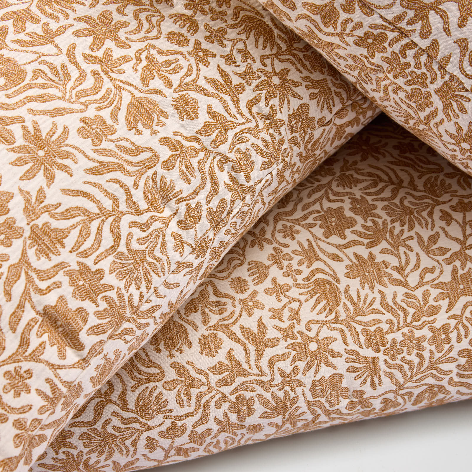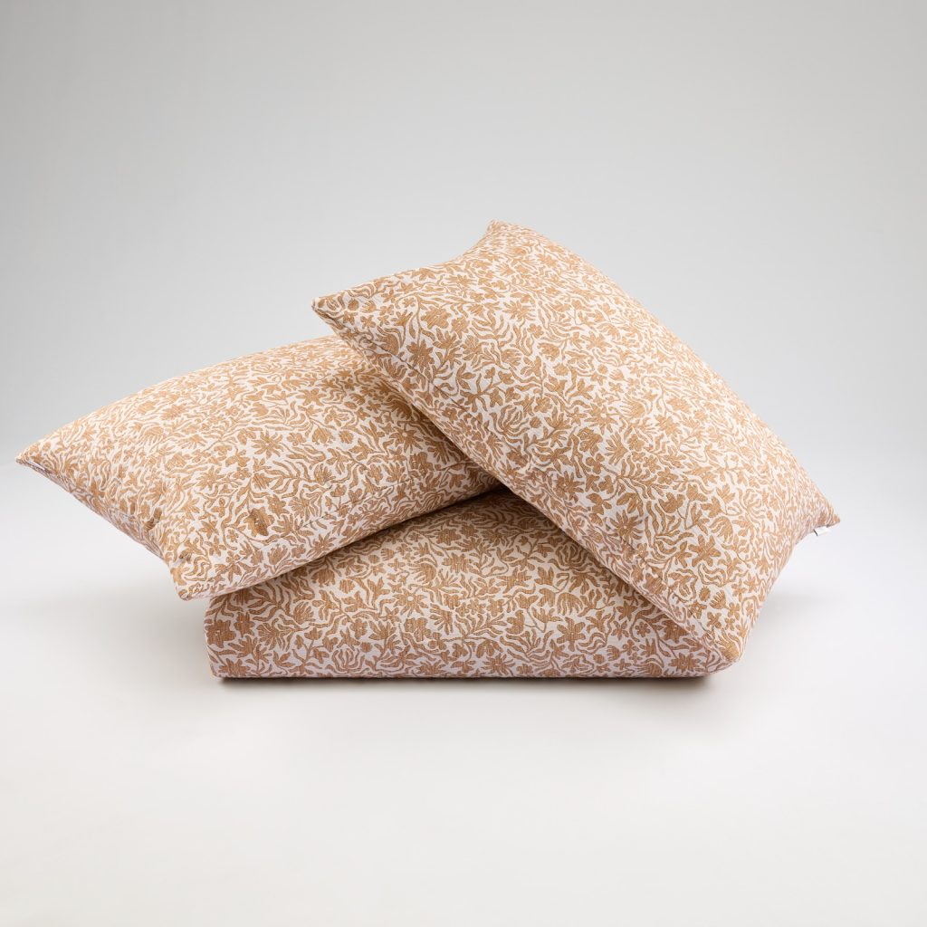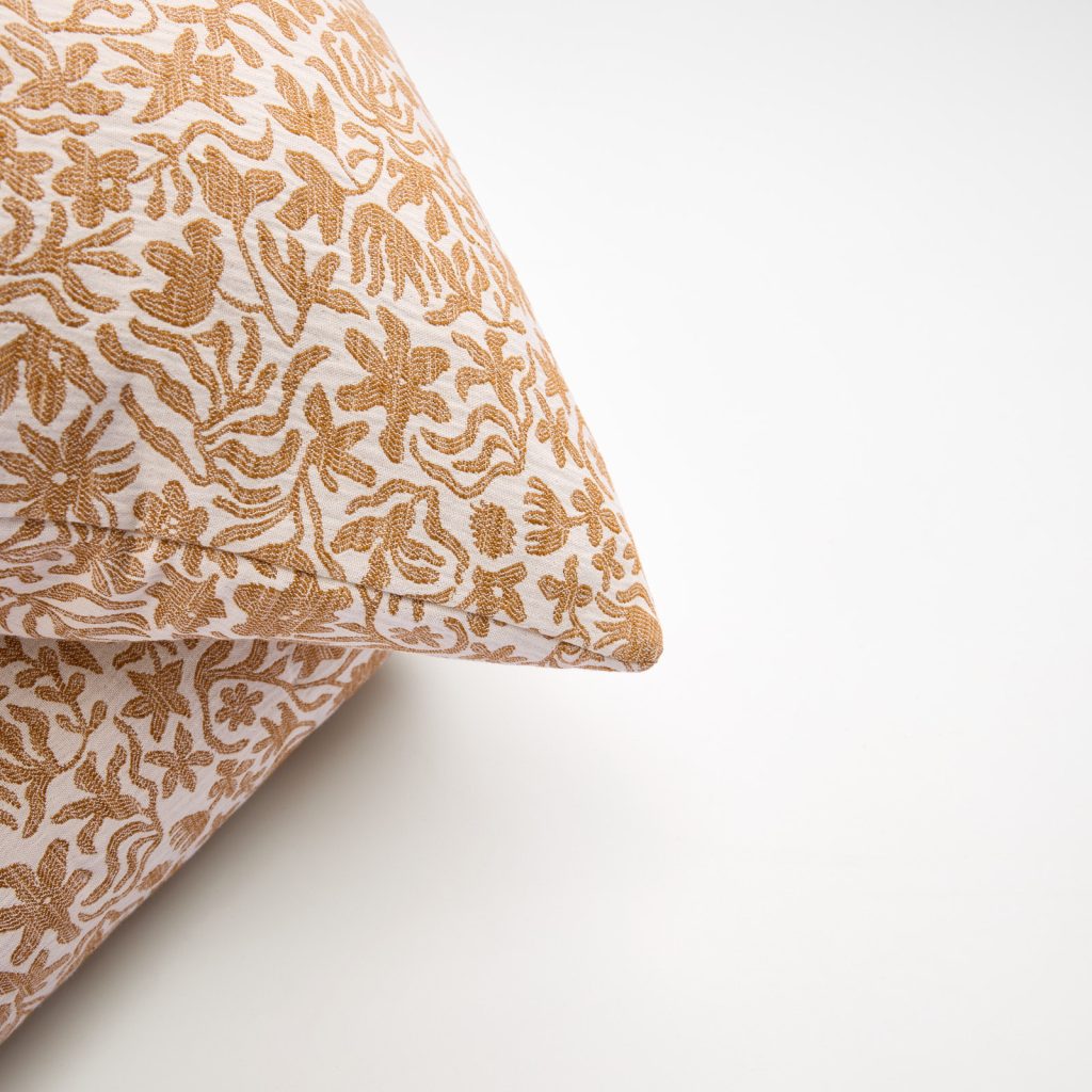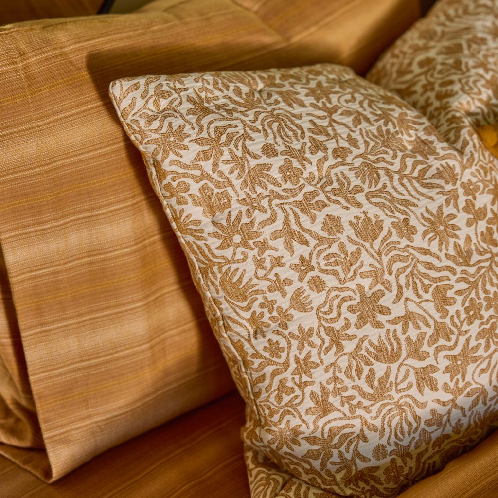 O Quilt Inspira revela-se numa peça de autor, que respira autenticidade. A mistura dos seus tons, branco e âmbar, traz um reflexo de calor e serenidade, evocando a luminosidade da estação do outono e a intensidade terrosa da natureza. O linho na sua composição acrescenta nobreza e uma textura rica, oferecendo-lhe, um visual intemporal e refinado. Em dupla-face, para uma maior versatilidade e flexibilidade de utilização e combinações, esta peça traz uma face com mais personalidade e outra simples e minimalistapara que seja mais fácil decorar e combinar com os diferentes elementos presentes no espaço. Singularidade e exclusividade completam este quilt, graças ao debuxo do seu fio, que acompanha e dá vida ao movimento do desenho e realça o seu traço artístico e a inspiração manual que lhe deram origem. Tal como o nome indica, este quilt, inspira pela sua cor âmbar, quente e envolvente, capaz de transformar o quarto num espaço repleto de tranquilidade. A sua presença inspira calma, enche o quarto de serenidade e deixa que a vida se vista de harmonia. Tal como a respiração, traz equilíbrio e tal como a inspiração, desperta emoções.